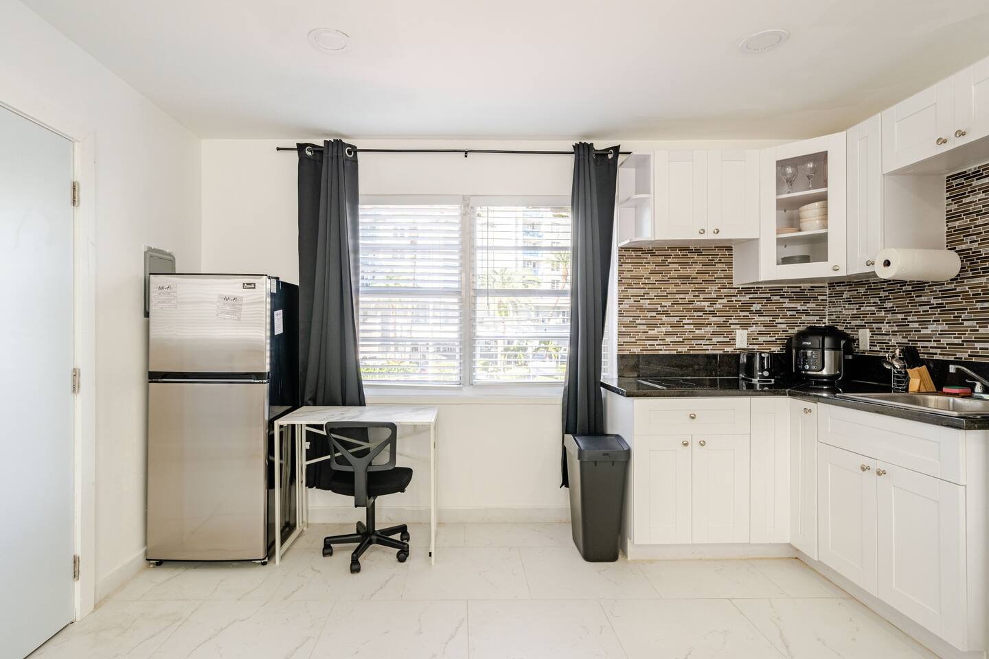 Experience the ultimate Miami Beach getaway in our recently renovated studio, located just 1.5 blocks from the pristine sands of Miami Beach via a public access path. This charming studio is also a block away from a vibrant array of trendy restaurants and bars, offering the best of Miami's nightlife scene. You will have a private entrance. The space includes a fully equipped kitchen, stocked with all the essentials and a private bathroom. You will love the location.