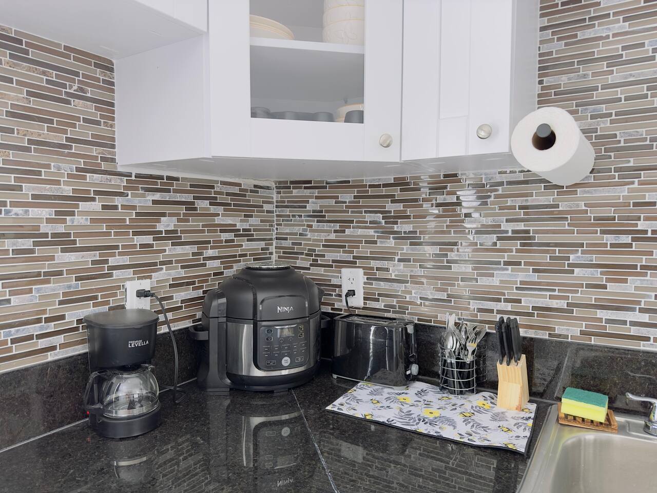The space is a complete studio that is great for families since it has two beds. Queen bed and a full size bed below that is a rollout bed. We can offer a pack and play per request. You have a small but full kitchen to make a quick breakfast or lunch before your beach day!